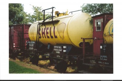 ein Kesselwagen mit ungewöhnlicher Farbgebung