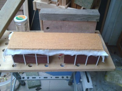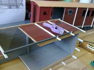 Das Dach wird mit Leinen bespannt als Nachbildung für Segeltuchbespannung