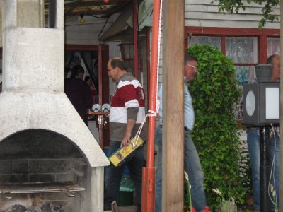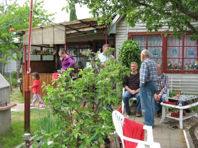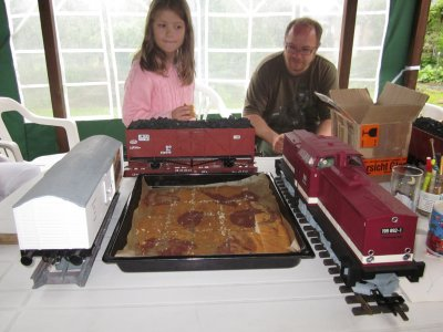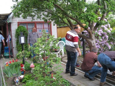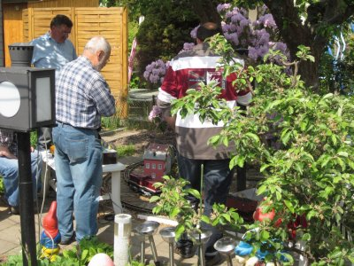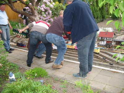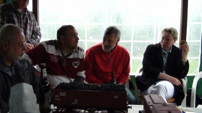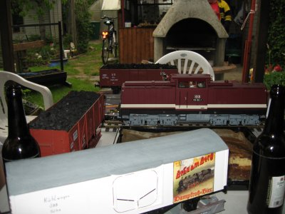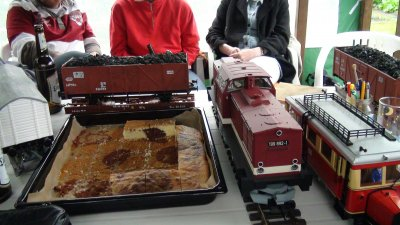 das rollende Material mußte schnell vor dem Sturzregen in Sicherheit gebracht werden.Der Kuchen war lecker,wie man sieht.