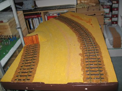 Bahnhofsende heißt die rechte Bahnhofsseite der Anlage,zwischen den Gleisen ist die Option für ein weiteres Gleis erhalten worden,d.h. das Planum ist fertig